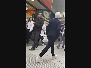 She was standing still when I noticed her on the street. I got close and I examined every curve of her legs and round ass in tights and I had the biggest boner ever. It's not just about her ravishing ass, it's also about the way how she walks. Her hips will hypnotize you.