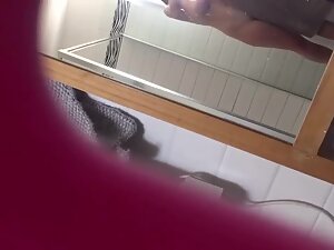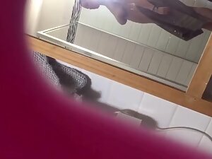 Her naked body looks unbelievable and that is exactly why her stepbrother enjoys spying on her in the bathroom. He caught her in and out of shower, first with a white facial mask and then when she washed it off. Her big tits and juicy ass are worth all the possible risk.