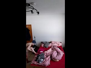 She got to her room right after a shower, still fully naked, and she rubbed her entire body with lotion. Hidden camera is spying on her while she does it and you'll get to see all of her, specially those big boobs and priceless moments when she squeezes them as she rubs herself.