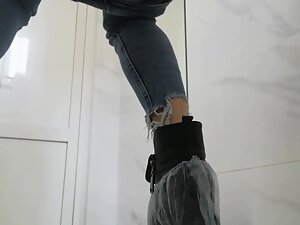 This public toilet is the kind where the girl has to completely crouch down to pee and placing the hidden camera on the side was a genius idea. It caught this hot naked butt opening up, with butt hole spreading like a flower, while her wet pussy is peeing down.
