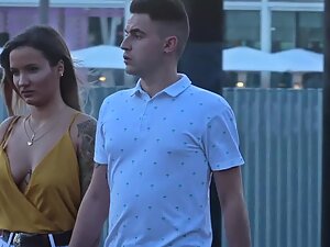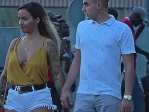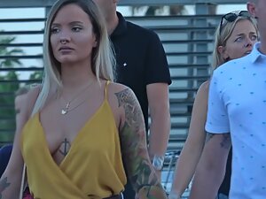 She looks like the hipster version of an alternative girl and it makes her as fuckable as humanly possible. This hot girl with tattooed arm and an anchor tattoo between her tits isn't wearing a bra and voyeur is checking out every bit of her downblouse and then some. That nose piercing is a sexy final touch on her appearance.