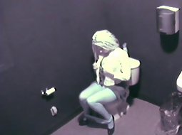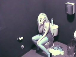 Seems like the hidden camera caught this blonde babe pissing and getting a little bit horny. It took her just few minutes of fingering her pussy while sitting on the toilet and she orgasmed and quickly got out of there.