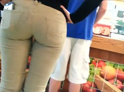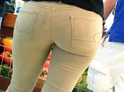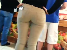 Hot ass in beige jeans