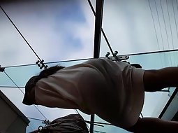 Hot ass in tights on the moving stairs