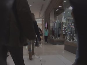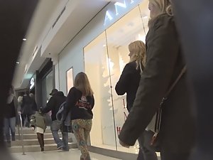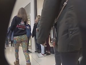 It isn't possible to miss her in the store. Those tights have so many colors on them that they make her tight ass scream for attention. She was browsing the store and I kept browsing her legs and ass in leggings and I kind of like the way she dresses like a total attention whore.