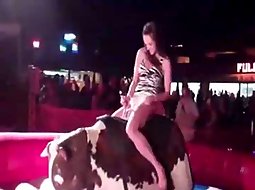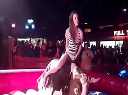 If you ever saw a mechanical bull ride, you'll know that it isn't a hard thing to talk a girl into trying it out. Well, this one did try it and somewhere along the road she forgot she is wearing a very short skirt.