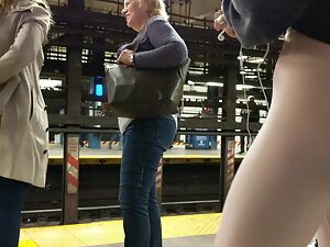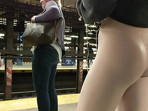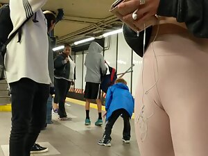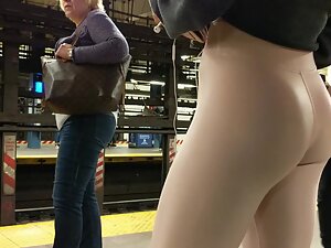 Just when you start thinking that this fit girl's ass is definitely the best part about her, she'll turn towards the voyeur and you'll notice her sweet cameltoe. Voyeur is eyeing the fuck out of her on the subway station and she looks simply perfect in her pink leggings. Her beautiful face and sporty figure are a dream for any voyeur.
