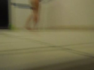 I realized there is a slight opening at the bottom part of the wall of the shower room so I waited there to see if I can catch something with my camera. There was a teen girl in there, all alone and fully naked, showering and washing up after exercising. She got a youthful body line, firm, tender and gorgeous.