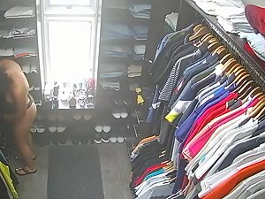 Hidden camera caught this curvy naked woman in her gigantic walk in closet and I'm sure you'll agree she deserves all those clothes to make her feisty big tits and huge ass look even more sexy. You'll see she is taking her time to pick what underwear and clothes to wear for the day.