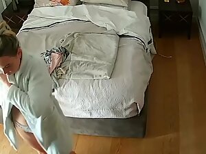 Hot housewife caught while trying out sexy panties in bedroom