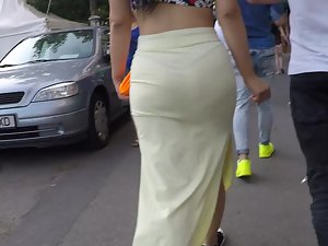 This hot mom still got what it takes to look seductive and she gladly proves it with her choice of clothes. She is wearing a simple long dress and it works wonders to show off her big ripe ass and her string thong. She sways her hips in a sexy manner and voyeur is gladly following her.