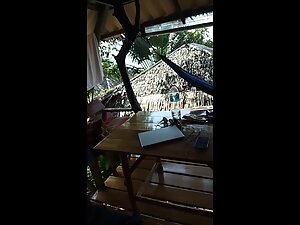 Chilling in the hammock at a tropical resort becomes even better when a hottie comes over and gives you a blowjob. They soon move inside to the bed and she keeps on sucking until he sticks it inside her wet pussy. He fucks her brains out and gives her a nice creampie.