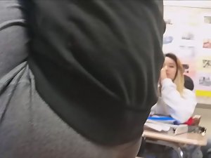 This sexy girl is my classmate and she drives me nuts with her big voluptuous ass squeezed in tights. She was talking with someone and bending over right in front of me, not knowing I'm secretly filming her. Needless to say, I didn't hear anything that professor said.