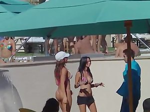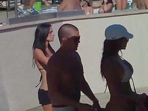 Party mood was at full swing and I immediately noticed the hottest bitch by the swimming pool. She was dancing with a friend and her curvy muscular body was looking majestic. However, she was taken and led away by her boyfriend. He constantly grabbed her ass while they walked away.