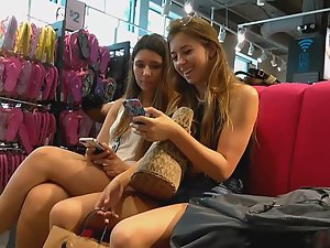 I've caught up with this outstanding teen girl while she was shopping for sneakers along with a friend. She was beautiful in every way, from her long legs and little ass to her gorgeous hair and face. I even caught the moment when she was snapping a selfie with her best friend forever.