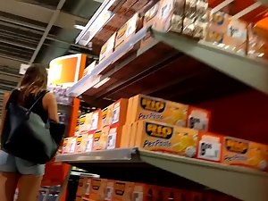 It is a bit troublesome when such a hottie is shopping for groceries and her boyfriend is right by her side. Still, voyeur did a few walks right by them, and he captured the essence of her tight little ass in shorts. He even managed to capture the moment when she was fully bent over and looking for food items.