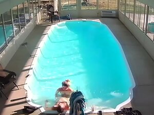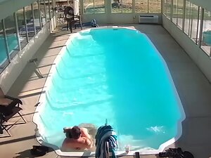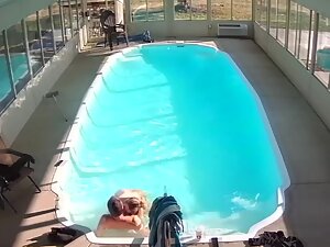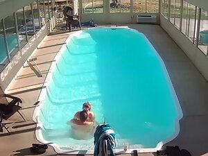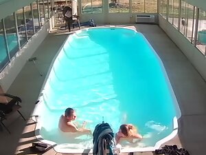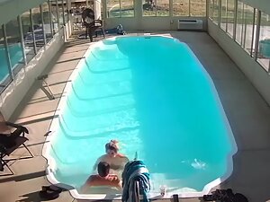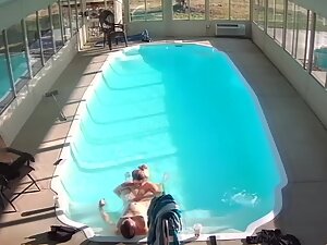 These two are houseguests at a fancy villa and a simple security camera in the swimming pool room caught them have a good time in there. They are naked, touching and teasing each other but it isn't fully clear if they actually have sex or just cuddle in the water.