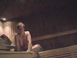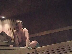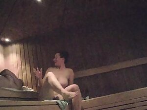 It isn't easy to sneak a candid camera into a sauna but it is possible and this voyeur does it for an excellent reason. There is an amazing busty woman in there with her friend and her huge boobs are so impressive that he just had to make a video of them. She smiles and looks happily unaware of the voyeur's activities in the sauna.