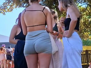 There is a lovely bubble butt squeezed in those grey shorts and voyeur is following every wiggle that her cheeks make. She meets up with friends and that gives the voyeur even more time to inspect her phat booty and how nice and inviting it looks.