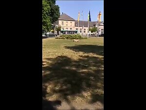 Maybe she just felt frisky or maybe she thought that the bushes are hiding her from the eye of the public, we'll never know. What we do know is that she was crazy horny and she was fingering her pussy in broad daylight until a random guy yelled at her and interrupted her orgasm in public.