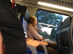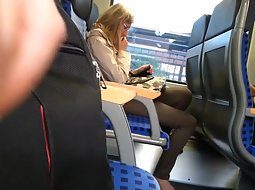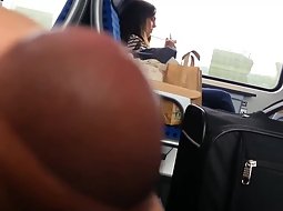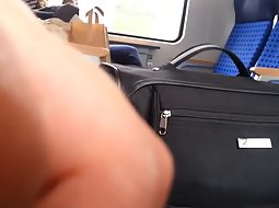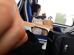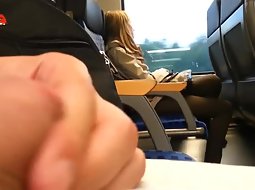 This cute and sexy teen girl in the train was fully unaware that there is a very horny guy sitting across from her and with his hard penis out, thinking of her in vivid wet dreams. He jerked it off without her noticing it.