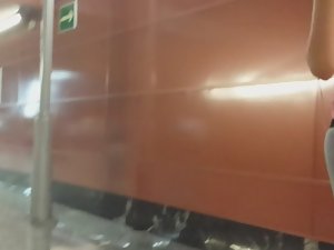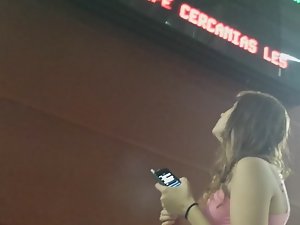 This sweetheart stood there and waited, focused on texting someone on the phone. That gave me a good chance to come closer for a better look and I made a closeup video of her plump teenage ass in grey tights. She got just a bit of love handles on her belly and that makes her even sweeter.