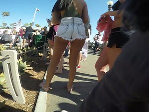 Her long hair was so neat that I bet she got here straight out of hairstylist saloon. Still, that is not what attracted me. It was her marvelous big ass and narrow waist. She wore those shorts that expanded with big, wide womanly hips and ass cheeks.