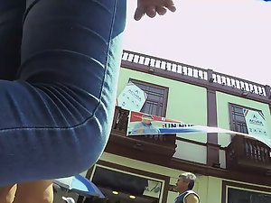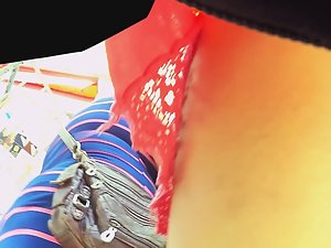 Voyeur used his chance to peep inside this latina's upskirt while she was standing with her friends and it showed just how fuckable and erotic her ass and thong are. Her butt cheeks are smooth and rounded and her juicy ass crack is totally devouring the thong.