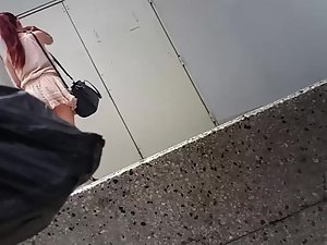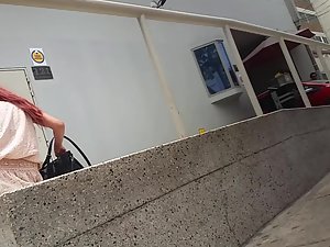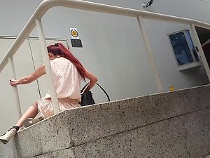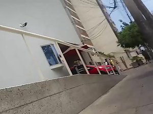 Her laziness caused a sexy moment of accidental nudity and it caused us to see her naked ass. You see, this lazy girl didn't want to walk all the way around and use the stairs, so she climbed over the nearest wall and down below the fence. Voyeur was standing there and he reacted quickly to videotape her, and he had a clear shot of her lovely upskirt and her sweet butt.