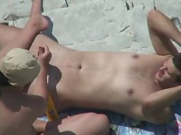They just did some lotion rubbing on each other and next thing I saw was that she had his cock in her hand. Someone was approaching them so she even had to hide it a bit at one point, so funny.