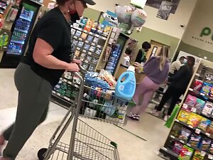 This milf either got incredible booty genes or she had butt implants done to make her ass look much bigger. One way or the other, it is a pleasure to stumble on her in the supermarket. Those pink leggings are really putting that wonderful huge ass on full display, like a pedestal.