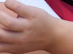 This hot tourist milf picked an unusual spot in the city to lay back, which made it possible for the voyeur to check out her gigantic boobs. That red bra and smooth skin on her huge tits is making the zooming spectacular from this viewing angle.