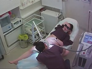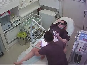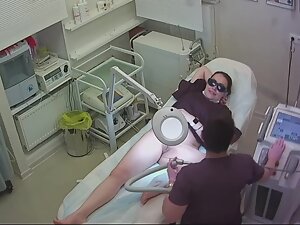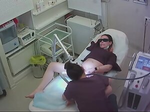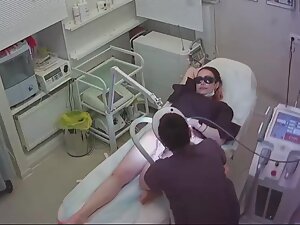 There is something erotic about this fancy looking milf that got caught by hidden camera during the laser hair removal treatment. She sure knows how to spread her legs open and she definitely likes it when her pussy is totally smooth. That fact alone makes it certain that she gets lots of sex on a regular basis.
