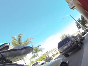 She really got the model looks, specially when she is in her bikini. It really emphasizes her long legs, petite ass and slender frame. All that together is the reason why the voyeur follows her towards the beach. Her small ass gently shakes when she walks and it all gets recorded.