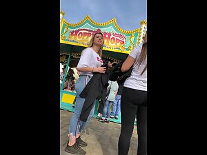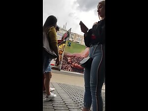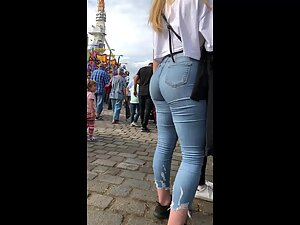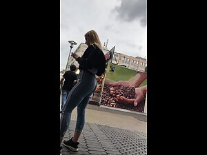 We don't know which sport this cute blonde does but it sure made her legs, thighs and ass mega powerful. Her muscular thighs and strong bubble butt look like they could easily rip and burst out of her jeans and that is exactly why voyeur follows her all over the place. Cuteness of her face and smile are making her look less intimidating and more fuckable.