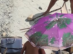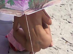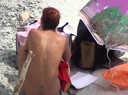 Zooming in on this naked milf was a very sexy thing. She was setting up her sunbathing spot and she kept bending over and crouching down, both of which made her superb round ass look adorable and inviting.
