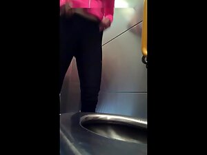 Judging by her sporty outfit, she popped inside the public toilet while she was jogging. Hidden camera caught her nice naked ass and an even nicer pussy hairstyle. She got an awesome bush that is neatly trimmed on the sides.