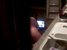 Now this is a voyeur sight for sore eyes. She got caught by a neighbor that peeped on her through a window and he saw her in an unflattering pose. She was watching a lesbian porn and she rode her dildo.