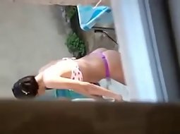 We are first door neighbors and I can't even began to describe how much I love watching her while she is walking around or swimming in the pool. This is the first time I managed to catch her pretty butt on camera.