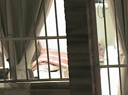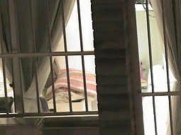 My neighbor is dressing up in her bedroom and I'm peeping on her through her window. I didn't know her naked body looks this good.