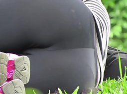 These cute girl was lying sideways on the park grass and a voyeur noticed her and started zooming in on her sweet ass in tights and she had a very interesting cameltoe forming in the middle of her butt crack.