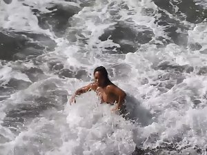 These two nudists are truly enjoying themselves on a nudist beach. Voyeur caught them rolling around the sand and hugging each other, while fully nude and relaxed under the sun. Seeing that busty woman nude and doing that, I can't help it not to think she ended up with sand in her vagina. She rushed to the water to wash off the sand but she got back to lying around on it just a few moments later.