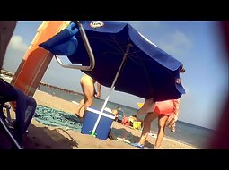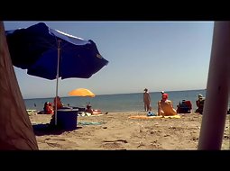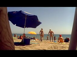 I was fresh out of the water so I laid back and enjoyed filming this sexy striptease from right in front of me on the beach. Hot nudist milf arrived to the beach and undressed completely to enjoy the sun.