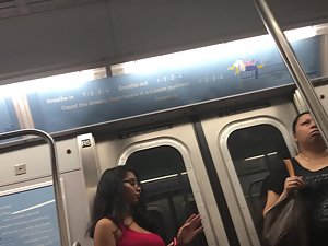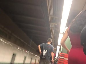 I don't know where she is going but I do know she is the sexiest woman on this subway train. That tight red dress fits and emphasizes her curves to the point I couldn't stop looking. In fact, I followed her when she went out of the train, just to get a good look at her big butt once again. That long black hair and her sexy glasses are making her look like a real vamp woman.