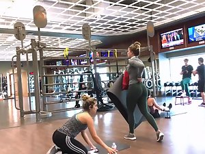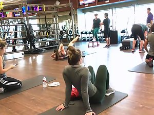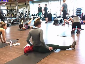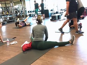 I peeped this superb girl when her workout was over and while she was stretching her legs. She was by fat the sexiest girl in the gym today. Slim and muscular but with an insane bubble butt in green tights. Truly something that you don't see too often. Bonus points for her flexibility as well.