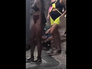 There is a festival in the park so it isn't unusual to see the party girls peeing around the trees but this one takes it...