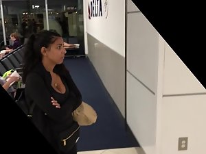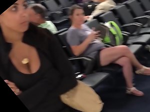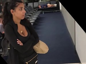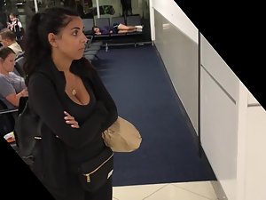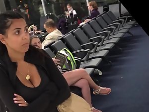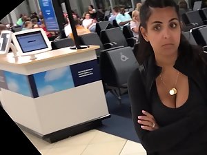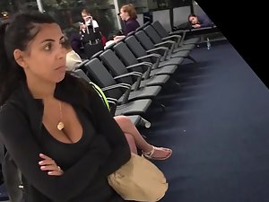 Just a quick voyeur video was possible but it is more than enough to show you how that lucky pendant gets stuck inside her big boobs. This serious looking woman is waiting for someone and she is utterly unaware that someone next to her is drooling after her big breasts.