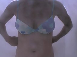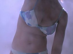 She has no idea that every piece of a bikini of clothes coming off or on her is being watched through the hidden camera and that those perky boobs and her nicely shaved pussy are being admired by all of us.