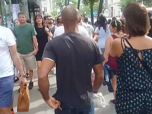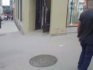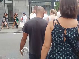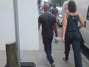 Seeing how big this woman's ass is, there is no surprise that her boyfriend is a black man. They walk together and voyeur follows them through the street, just to see more of her bubble butt wiggling and jiggling in her sexy jumpsuit. Her big phat ass got sensational bouncy moves, you're going to envy her black boyfriend on getting to see that very same thing, naked and on his dick.