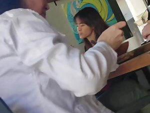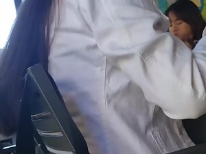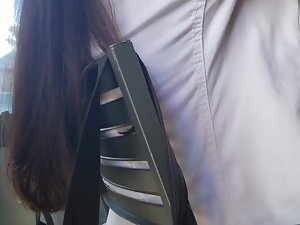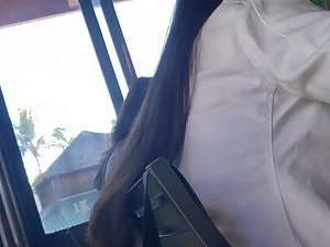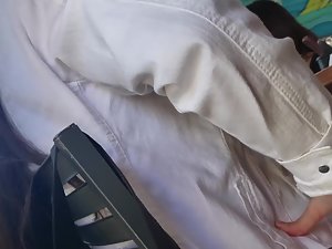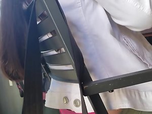 Voyeur is sitting diagonally from her so he doesn't have the best angle but he still managed to make a video of this mature woman's pink thong. She is casually dressed and if it wasn't for that little detail during the lunch, we would never know that there is a bit of fire hidden underneath her boring clothes. That thong slip proves she still likes to feel sexy.